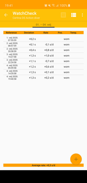 Inace,bez namere da nekome popujem ili filozofiram, ovo merenje prosecnog kasnjenja po danima nije preterano pouzdano niti merodavno (premda stoji da je to ono sto se na kraju dobije, koliko cesto moras da podesavas sat), vec je mnogo indikativnije pratiti par dana po pozicijama sata kako se ponasa, pa na osnovu toga suditi o preciznosti/tacnosti tog mehanizma/sata. I ovo nije Bogom dano ,jer dodatnog uticaja ima i izohronizam, temperatura...